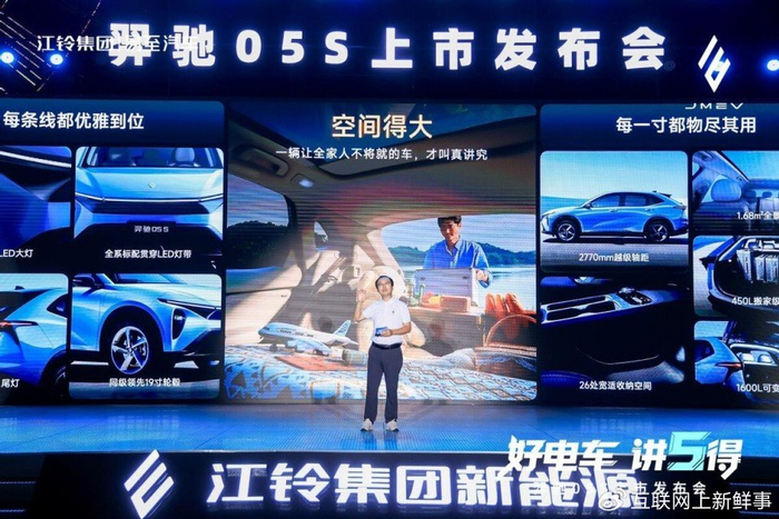 江铃集团新能源羿驰05S以“5得”产品力,安全得强、空间得大、驾控得稳、舒适得爽、用车得省,全面满足家庭用户需求。
