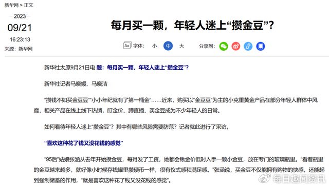 这两天,新华社发了篇文章,说现在的年轻人迷上“攒金豆”了。