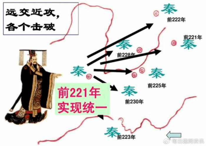 另外,魏冉还曾四次穿越周韩之地,劳师远征,去攻打魏都大梁,但每次都因为大梁城池坚固、守军众多、救兵频至而功败垂成(注4)。看来,魏冉的战略是有问题的。战争是一件成本高昂而相当消耗国力的事情,需要以战养战,来降低扩张成本;需要就近夺取土地,步步为营,以建立前进基地;而无视地缘格局的投机与冒进,只能导致国力枯竭而自取灭亡(注5)。所以,范雎提议秦昭襄王放弃魏冉,并为秦献上了自己先弱后强,由近及远之战略方针,这也就是中国最早的地缘政治理论“远交近攻”了: