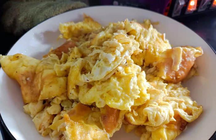 第一道农村笨鸡蛋,金灿灿的笨鸡蛋煎出来就能闻到香味,那个鸡蛋是一阵阵的香气扑来,下酒下饭都贼好的一道菜,在东北城里这也是一道硬菜了,放点葱花或者是放点青椒炒都好吃,香香嫩嫩的,现在鸡蛋价格也不便宜,只有农村才能实现鸡蛋自由了!
