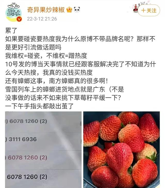 3月10日网友@奇异果炒辣椒发了个微博: