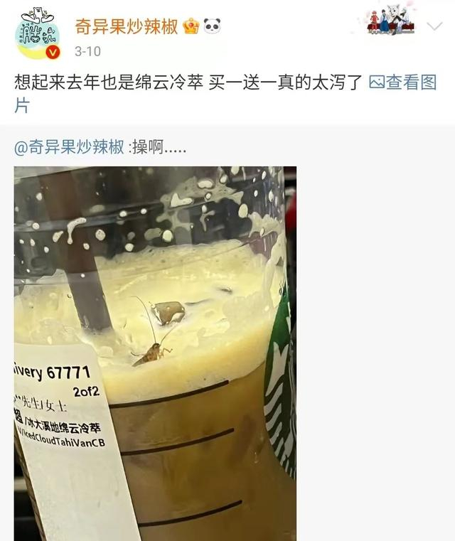 糟心的不是满杯星巴克里有个蟑螂,而是喝了半杯的星巴克里有个蟑螂!