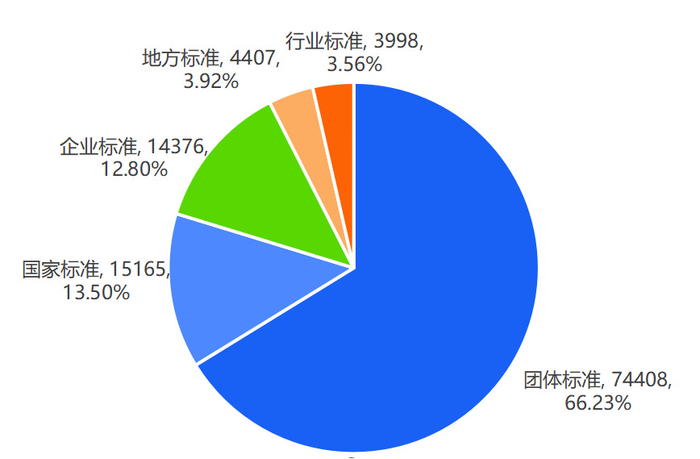 近一年,民营企业共参与制定标准112,354次,其中参编团体标准74,408次、国家标准15,165次、企业标准14,376次、地方标准4,407次、行业标准3,998次。
