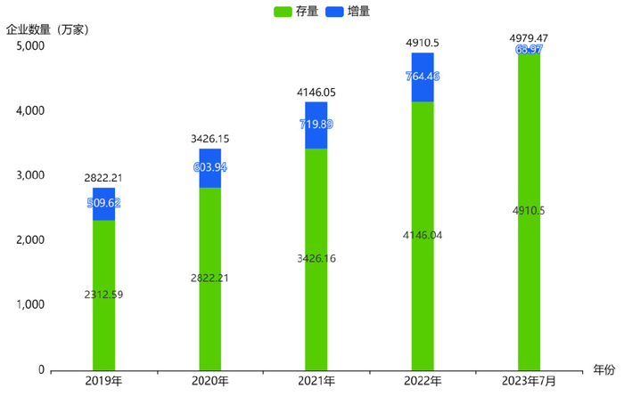 根据上奇产业通,截止到2023年07月31日,全国民营企业共有4,979.47万家。