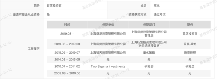高亢的学科积累始于物理领域。凭借奥林匹克物理竞赛金牌,他获得北大物理系保送资格,两年的本科学习为其奠定了扎实的物理学科基础。随后转学至MIT的三年间,他完成了物理、电气工程计算机两个主修学位,以及数学、经济学两个辅修学位。2010年,高亢入职海外顶尖对冲基金Two Sigma,以量化研究员的身份主攻Alpha策略——这是量化领域最考验核心能力的方向之一,需要在海量数据中找到稳定的超额收益因子。这段经历让他真正触摸到国际量化投资的“内核”。