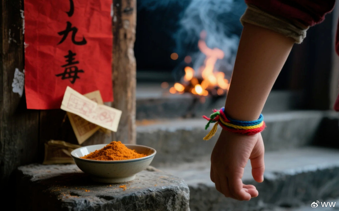 最有趣的,是民间对九毒日的讲究。过去乡下,廿七这天一家老小会在门口洒草灰、插艾条,有些地方还会烧纸钱驱邪,或喝雄黄酒、熬一锅茯苓绿豆粥,说是能“引毒出屋”,寓意把病气、晦气都送走。“过了九毒,福气上桌。”小孩子还会套个五色线环,讨个好彩头。