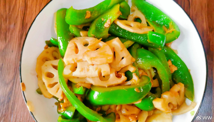 有些地方讲究“夏末断藕,滋味无穷”,意思是夏秋之交,藕粉糯正好。藕切片、加青椒、红椒、黄椒同炒,成菜色彩清雅,象征日子五彩缤纷。做法:藕片沸水焯,断生捞出,锅热下椒、姜蒜,最后合炒调味上桌。