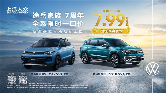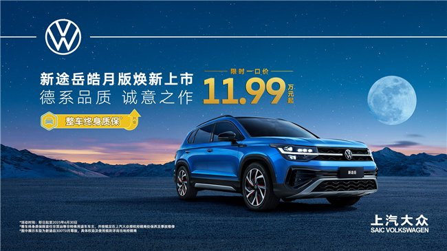 上汽大众途岳系列迎来上市7周年庆典,现推出多重购车福利。途岳新锐起售价7.99万元,新途岳起售价10.99万元,所有购车用户均可享受终身整车质保权益,彻底解决消费者的后顾之忧。特别值得一提的是,新推出的皓月版车型以一口价11.99万元的诚意价格加入产品矩阵。作为上汽大众精心打造的SUV标杆产品,途岳系列通过持续的产品迭代和配置优化,形成了覆盖不同消费需求的完整产品线,为消费者带来更加个性化的购车体验。皓月版车型各项表现如何,有什么特别升级之处,咱们一起来看看。