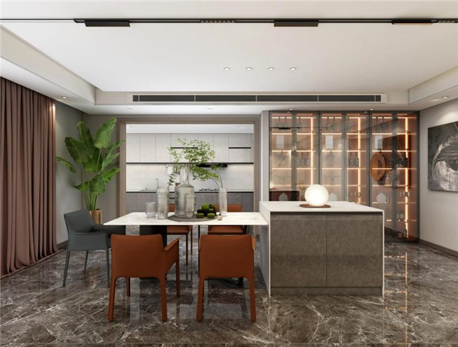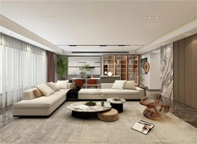 会客厅从色调伊始就在诠释着“沉”与“静”,这里是空间的“落脚”之处。前有高昂的绘写,后有隽永幽静的回声。起承转合,必有归处。客厅区域引入温润的木质,浅色调融合暖阳气息,不疾不徐地诠释着区域内的静与雅。缓缓步入其中,美学的脉络在眼前不知不觉展开。