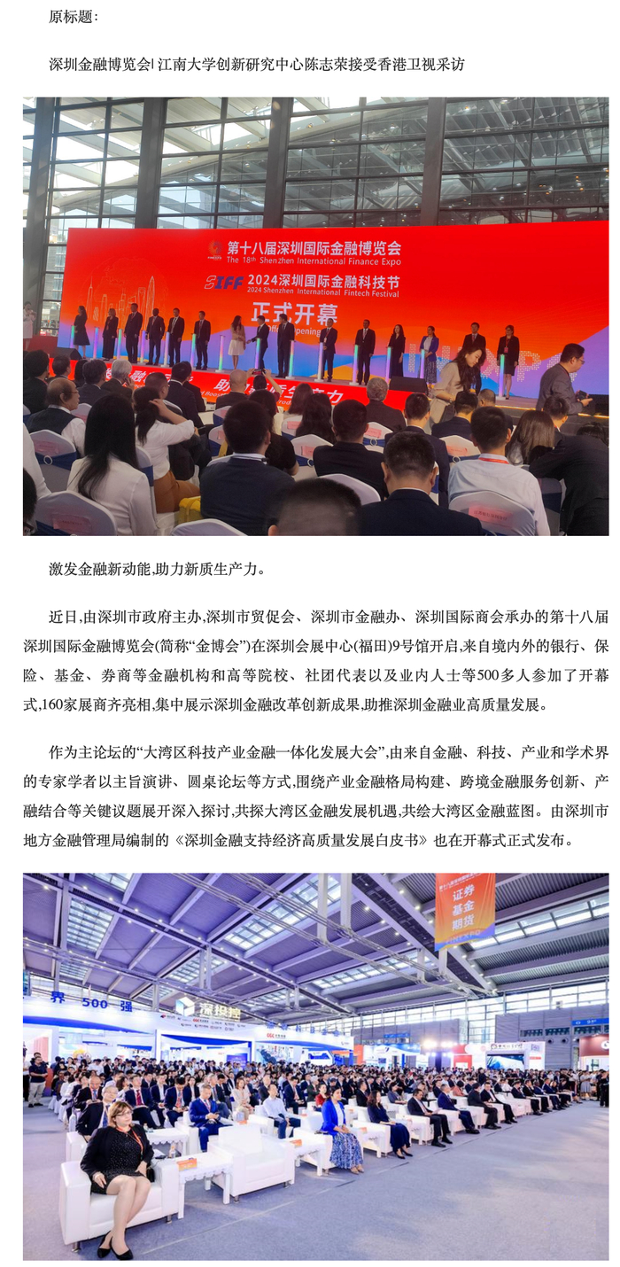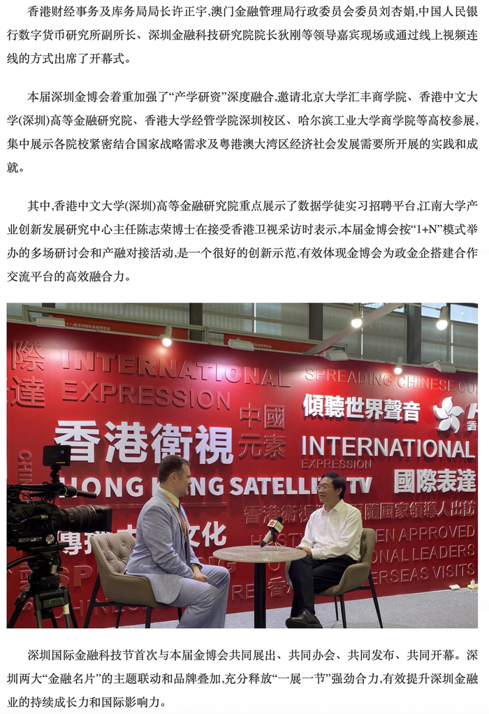 深圳金融博览会 江南大学创新研究中心陈志荣接受香港卫视采访