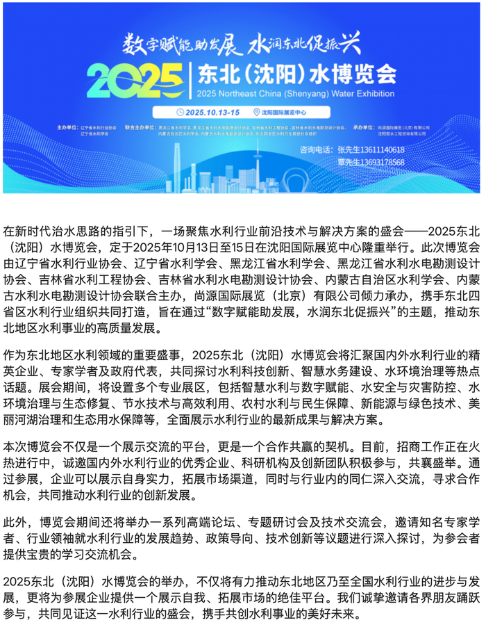 2025东北沈阳水博览会招商全面启动
