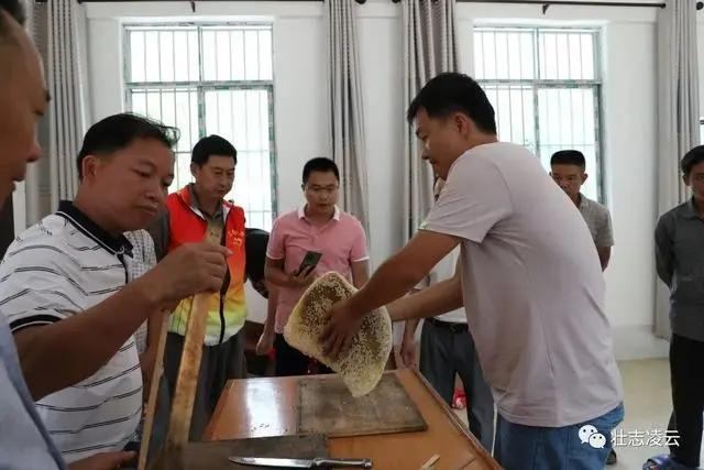 “原来村里群众养蜂习俗是以‘毁巢取蜜’的传统方式为主,蜂蜜产量低、质量得不到保证,增加家庭经济收入收效甚微。广西容县灵山镇养蜂技术人员带着先进的养蜂理念和技术来到兰台村,手把手向群众传授中华蜜蜂活框科学养殖技术,参加培训的群众收获非常大,大家纷纷表示要好好学习养蜂新知识、新理念,争取早日奔向小康生活!”兰应秋介绍说。
