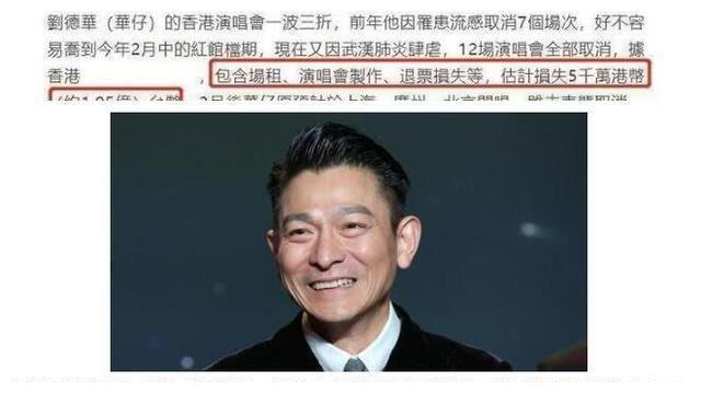 刘德华原本要开演唱会,不得不取消,已经带来大约五千万损失了,而据爆料他私下捐款两千万,很多人都被他感动,此外他还制作了一首歌曲《我知道》,希望可以为公众带来正能量。