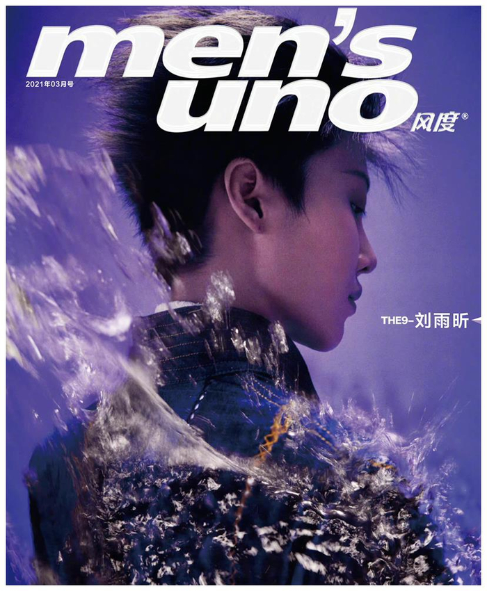 3月5日,《风度men's uno》杂志发布刘雨昕2021年三月开季刊封面和内页大片,这是刘雨昕第一封个人男刊封面!