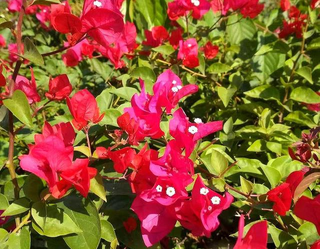现在正是三角梅开花的时候,为了使三角梅的花朵更加的艳丽,花期更长,建议要将三角梅养在光照充足的地方。三角梅不怕晒,而且耐高温的能力也很强大,即使是炎热高温的夏季,长在室外的三角梅依然能够照常生长和开花。相反,如果将三角梅养在光照不足的地方,只会拼命地长枝条,开花量很少甚至都不开花。