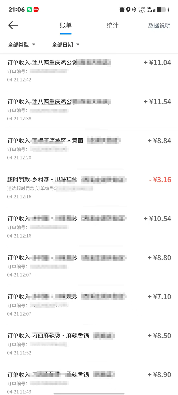 多名众包骑手反馈了类似的情况。4月22日,此前专职跑饿了么的骑手张鹏(化名)已经入驻“达达秒送”两天了。他告诉银柿财经,饿了么订单的单价在4.5~8元左右,近距离的单子基本在4.5元,京东外卖的单价是7~9元。一名跑过美团众包的骑手则介绍,美团大部分订单能赚到六七元钱左右。