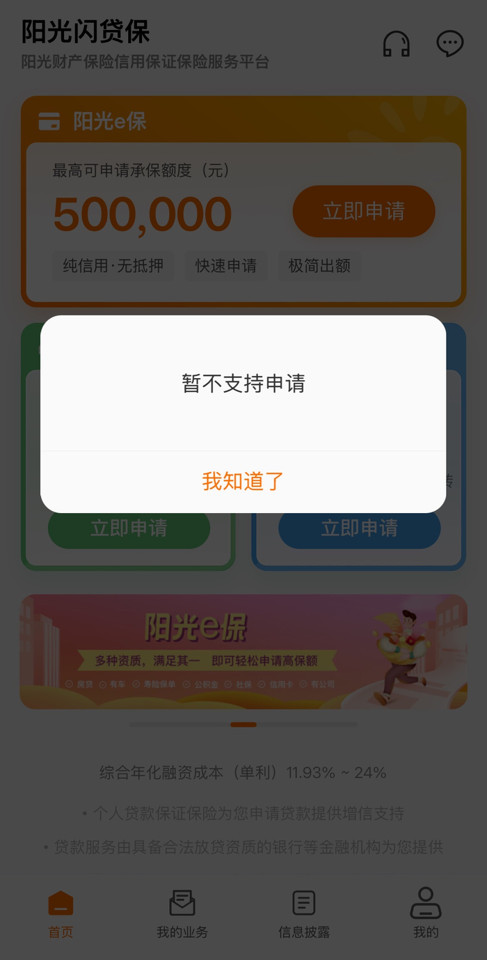 从产品端来看,大地保险旗下的“大地时贷险App”客服回复财闻称:现在申请不了业务,系统正在调整,调整完之后如有合适产品才可以申请。阳光财险的“阳光闪贷保App”显示:暂不支持申请。