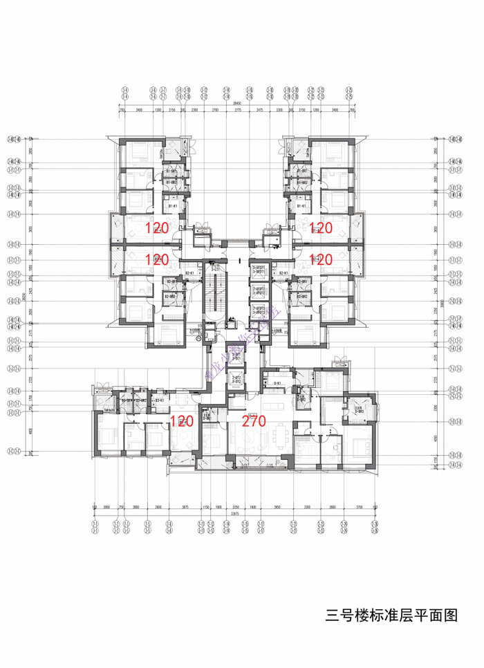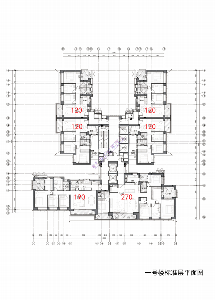 1、户型方正,120平设计成三房两卫,190平四房两卫,270平五房三卫;