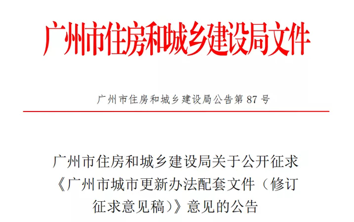 近日,广州市住建局发布了《广州市城市更新办法配套文件(修订征求意见稿)》的意见公告,当中有一部分值得村民关注的亮点。