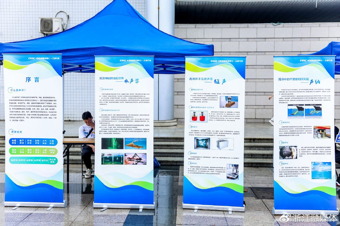 本次海洋日嘉年华活动设置了展品区、互动体验区、科普问答区三个板块,打造了一场集知识性、趣味性、互动性于一体的全方位海洋体验盛宴。作为我国海洋科技领域的国家队,七一五所始终深耕海洋探测、海洋装备等关键领域,致力于海洋科技创新。此次充分发挥其深厚的技术、文化积淀和专业、人才优势,展示海洋科技成果和优秀人才风采,并聚焦“声学”领域,向浙大学子们展现了“声纳探海”的独特魅力,点燃了年轻学子探索海洋的求知热情,更在他们心中播下一颗科学爱国的种子。