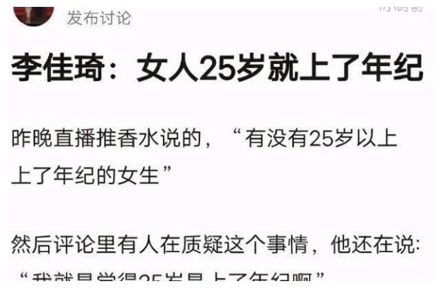 不得不说,最近李佳 琦翻车的次数越来越频繁了,前段时间卖香水的时候,他就说过25岁的女生上了年纪。