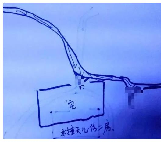 水从天心直撞到宅,贫穷再所难逃。因为天心冲撞是中心位置,一般二房会更加应验。发祸速度极快。
