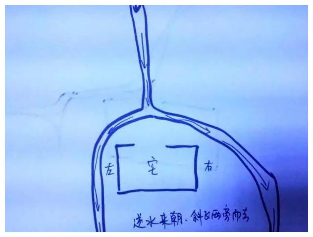 这种水一般阳宅比较难找,阴宅用得较多。阴宅见此种水地,而又旺山旺向的话,必然富贵荣华。