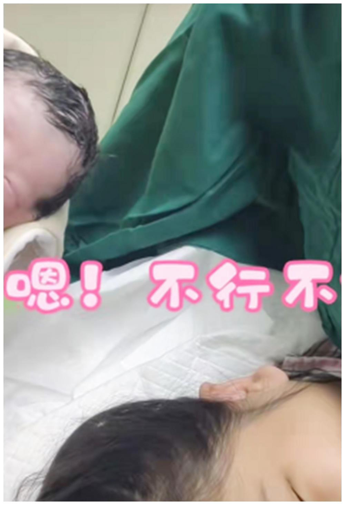 而护士也是满心地想逗一逗这位妈妈,仍然把宝宝凑近妈妈的跟前,让妈妈看看自己的宝贝。而妈妈也在护士的要求下,
