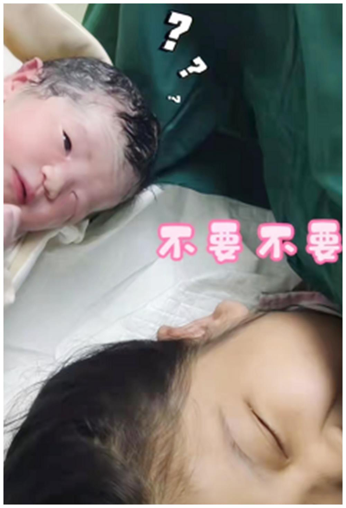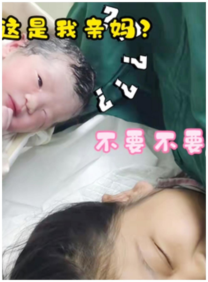 估计这位妈妈是被宝宝刚出生时的样子吓到了,毕竟和自己心里所想的相差巨大,而一旁已经睁开眼睛的宝宝看到刚见面的妈妈就如此这般嫌弃自己,