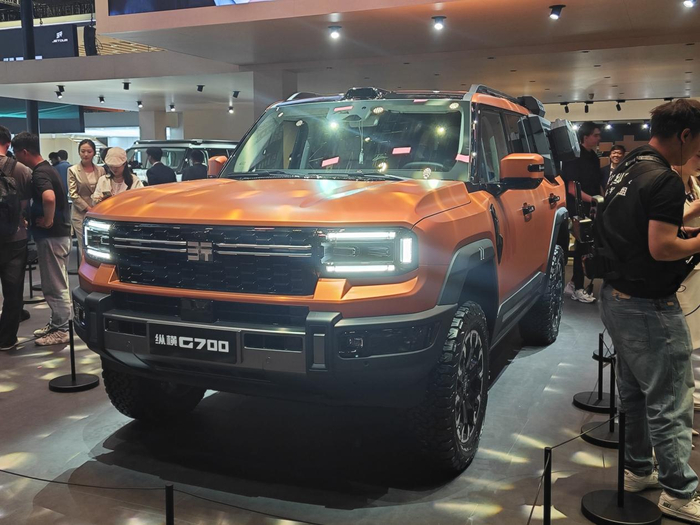 ▲奇瑞捷途纵横G700(来源:消费者报道)在捷途纵横展台,纵横G700同样吸引无数镜头。作为捷途全新的豪华越野品牌,纵横肩负着捷途汽车进军豪华新能源越野SUV市场的重任。纵横G700拥有水中航行、原地掉头等功能。吉利也不甘示弱,带来同样拥有水中航行和原地掉头功能的银河战舰。