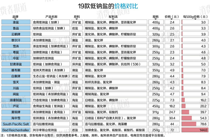 低钠盐的江湖也有“鄙视链”,这也导致了它们的价格差距悬殊。