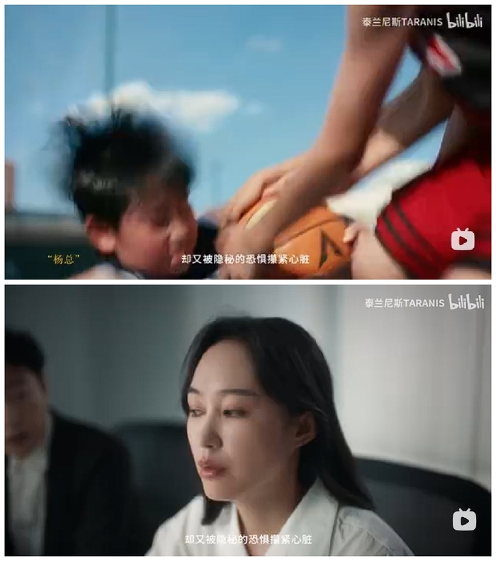 值得注意的是,泰兰尼斯在稳跑鞋宣传中延续了密集“轰炸”的策略,营销也被指“制造育儿焦虑”。在稳跑鞋宣传片中,职场妈妈开会场景与孩子操场受伤的画面交替闪现,画外音配着:“成长的脚步总是比想象来得快一些,你渴望孩子尽情奔跑,却又被隐秘的恐惧攥紧心脏,‘放手’与‘不安’的挣扎,是爱最深的困境。”