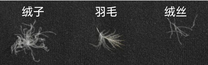 (2)认准吊牌或水洗标签上的充绒量、绒子含量标注。羽绒服的保暖性能主要依靠内部填充的鸭绒或鹅绒。内部羽绒包括绒子、羽毛、绒丝等,最保暖的是绒子,又叫朵绒,即鸭绒或鹅绒中形似绒球状的部分,一般呈放射状的小细丝。鸭绒或鹅绒的绒子含量、充绒量等直接决定了羽绒服的保暖性能,绒子含量指的是绒子在羽毛羽绒中的含量百分比,充绒量指的是羽绒服中填充的全部羽绒的重量。