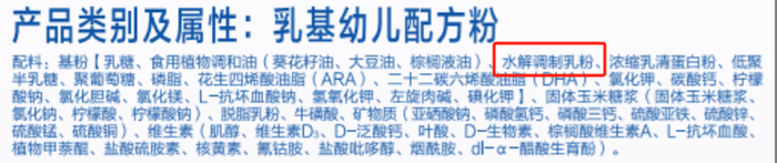 尽管在部分普通婴配奶粉与特医婴配奶粉中均可能出现水解蛋白,但该成分所发挥的作用却大相径庭。对于含水解蛋白的普通婴配奶粉而言,部分品牌此举可能是出于配方升级的考量,将水解蛋白作为一类特色成分应用至产品中,以突显产品配方的差异化。