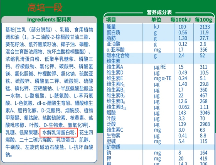 针对目前部分市售水解蛋白奶粉存在的工艺标注模糊问题,如直接将奶液进行水解却不说明水解程度,或添加水解蛋白成分后仅标注“乳清蛋白粉”、刻意省略“水解”二字,导致信息不透明,宋亮提出了明确的改进建议:“厂家应在配料表中清晰标注‘水解乳清蛋白’或‘水解酪蛋白’,从源头消除消费者的认知困惑。”