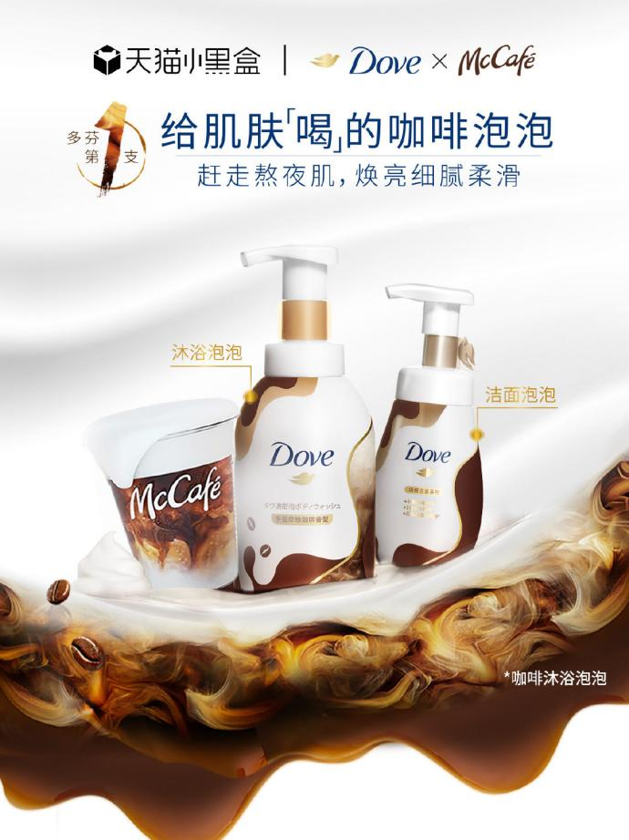 事实上,咖啡香型产品在沐浴届并非新奇事物,早在2021年,多芬就联手麦当劳旗下咖啡品牌麦咖啡(McCafé)跨界合作,以咖啡为创意灵感,推出“手摇拿铁咖啡香型泡泡沐浴露”及“绵绵洁面慕斯洗面奶”。该限时联名款产品在官方旗舰店早已下架,目前只在电商平台的小店有零星售卖。