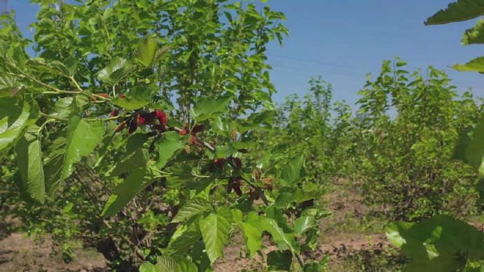 春末夏至,沈丘县新安集镇郭寨行政村的桑葚园内,翠绿的枝叶间已挂满了果实,青果渐褪、紫果盈枝。作为该镇“一村一品”特色农业的代表,桑葚产业不仅为农民增收开辟新路径,更成为推动乡村振兴的“甜蜜引擎”。