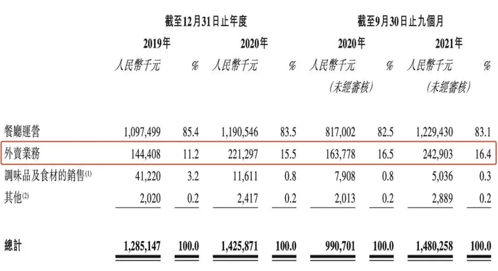疫情期间外卖服务需求激增,原本外卖较薄弱的七欣天快速抓住机会,改良了外卖包装,为消费者带来了更优质的菜品温度、风味和口感,同时保障了食品安全。据招股书披露,从2019年至2021年9月30日,七欣天外卖业务所带来的营业收入由1.44亿元增至2.43亿元,营收占比由11.2%增至16.4%。而从不断增加的外卖订单数来看,七欣天的外卖服务颇受顾客喜爱。从2019年至2020年,外卖订单数目增加了28.4%,截止2019年9月30日,外卖订单相较同期增加了70.6%。