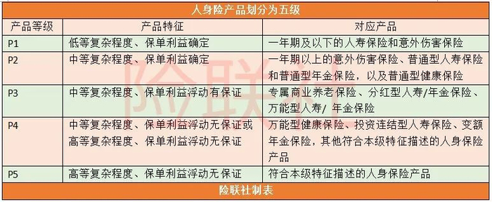《自律规则》拟将人身险产品分为P1、P2、P3、P4、P5五级,财产险产品划分为P1、P2、P3三级,复杂程度从1到5越来越高。