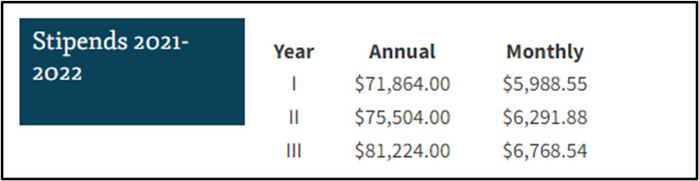 国内住院医的收入似乎差异很大(比如学位不同就能带来差别),而且数据也比较难找。美国这里各个医院住院医项目的薪水都是公开的,很容易找,我们可以看看斯坦福内科在网上公布的薪资: