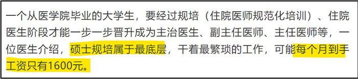 医生培养周期长,对应的阶段不同,工作性质、收入都会有很大差异。拿规培收入作为医生起步收入,具有误导性。