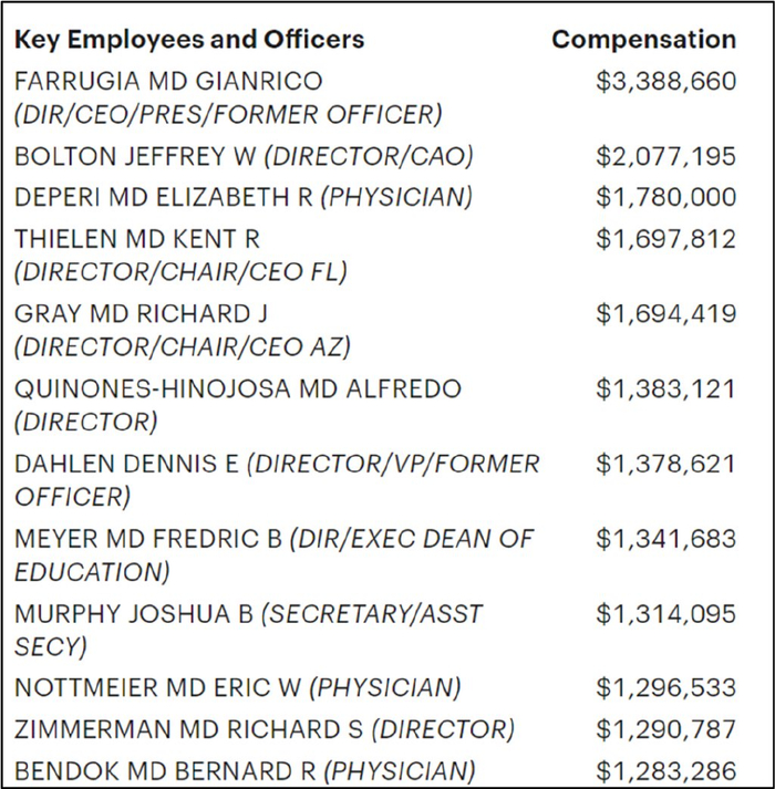 以下数字可以做一些参考。美国家庭人均收入大约是7.1万美元,而妙佑诊所(Mayo Clinic)住院医第一年的年薪是6.7万美元,主治医生起薪在20万出头,根据2021年税表,该机构CEO的年薪是338万,非管理层的医生最高在120多万:
