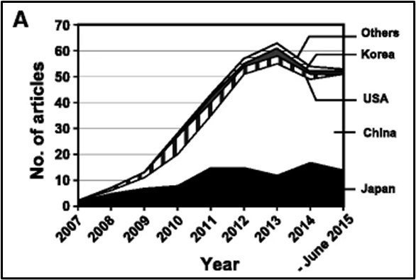 这些论文来自于哪里?最初主要是日本,但很快中国就成了氢气论文批发中心: