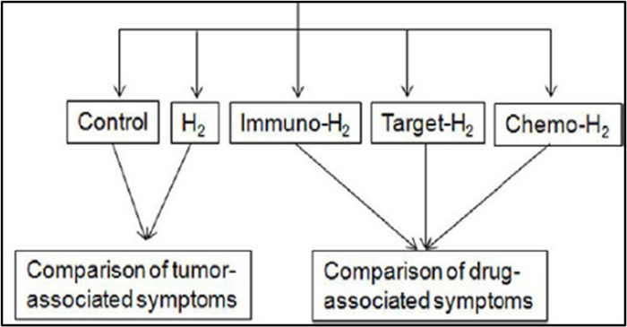 在该研究中58名晚期肺癌患者分到5个治疗组,分别不接受任何治疗(对照),接受氢气治疗,以及在氢气治疗上分别加入免疫治疗、靶向治疗或化疗: