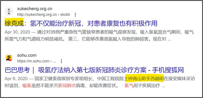 这也引出了氢气治疗、氢气养生能悄然泛滥的一个可能的导火索,氢气治疗曾经入选过中国新冠诊疗方案。为什么氢气治疗能入选,谁推动了这种疗法的入选,互联网有记忆,谁干了伤天害理的龌龊事,一查便知。
