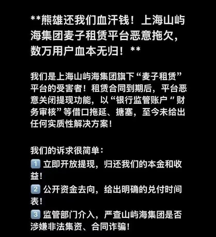 同时,通告显示,上海市公安局虹口分局对上海山屿海投资集团有限公司涉嫌非法吸收公众存款罪立案侦查并对公司相关人员采取刑事强制措施。
