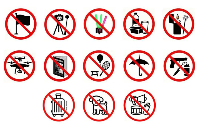 1.禁止携带各类旗帜、旗杆(包括任何伸缩旗帜及旗杆)。