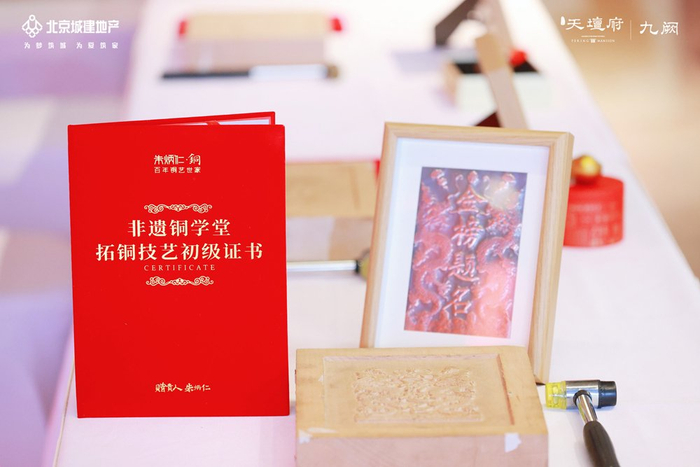 完成作品后,大家捧着专属铜拓手作和非遗铜学堂拓铜技艺证书合影留念,用专属非遗手作开启新年篇章。