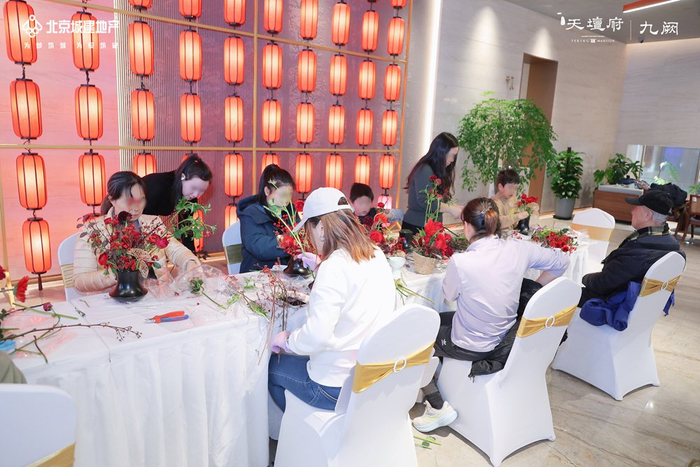 插花活动现场大家捧着亲手制作的花艺作品,在花香中感受中式风雅,将新年的生机与美好带回家中。