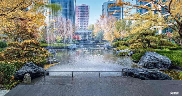 房山国贤府以东方审美为魂,巧借园中地势,以高超的当代造园技艺,筑就中轴对称、格局方正的“东方府宅八景”,于城芯之上铺陈一幅约6000m²的山水居游长卷。